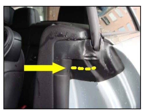^ Perform water test at B-Pillar door glass with a soft spray for at least 5 minutes.