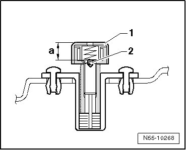 - Install the locking screw - 2 - on the adjusting buffer - 1 - to a depth of - dimension a = 20 mm + +5 mm -.