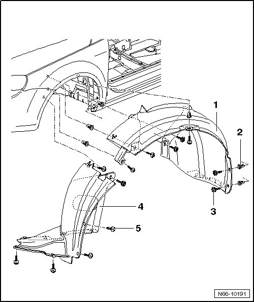 - Remove front part of wheel housing liner - 4 -.