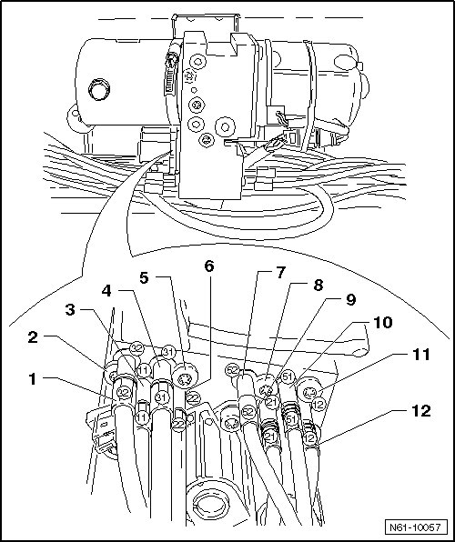 • Hydraulic line to hydraulic cylinder in left roof pillar.