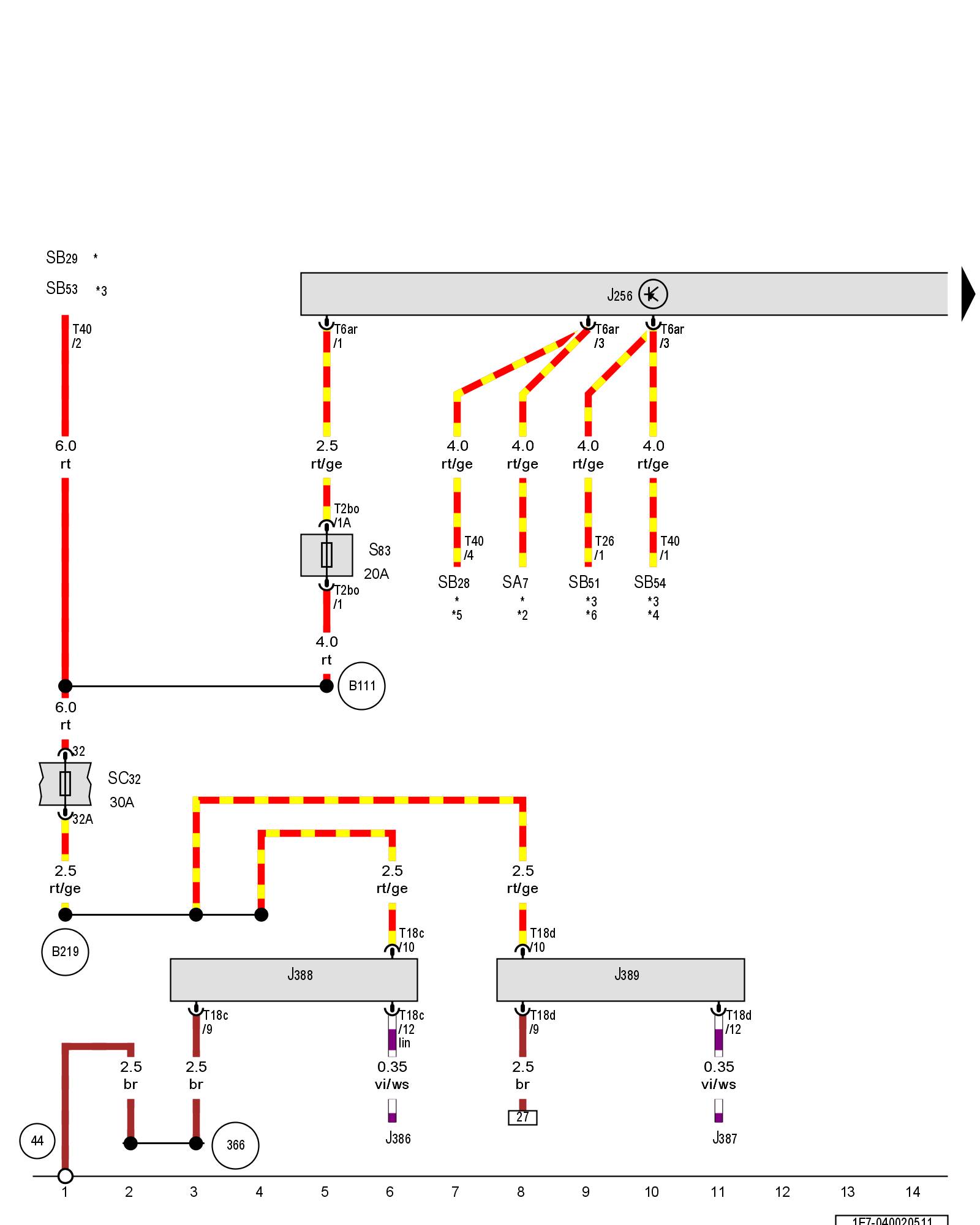 (B111) - Positive connection 1 (30a) (in interior wiring harness)