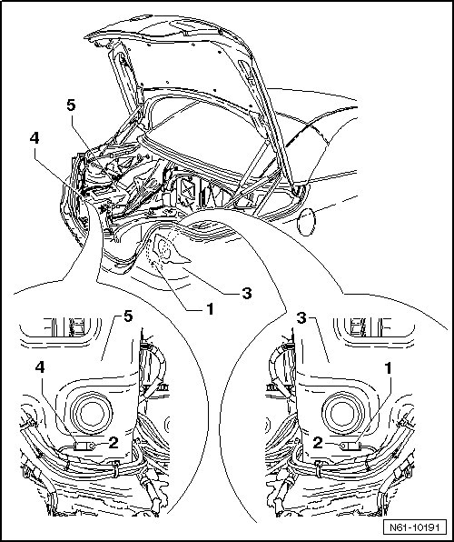 - Remove the rivet - 2 - and the sensor - 1/4 - from the body panel - 3/5 -.