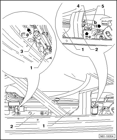 - Raise the spring clips- 3 - just far enough so they can slide over the ball socket in direction of the - arrow a -.
