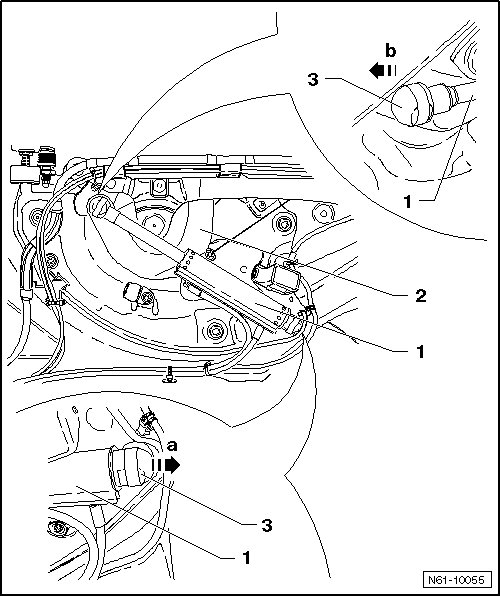 - Lift spring clips- 3 - only far enough so that they can slide over ball socket in - direction of arrow a and b -.