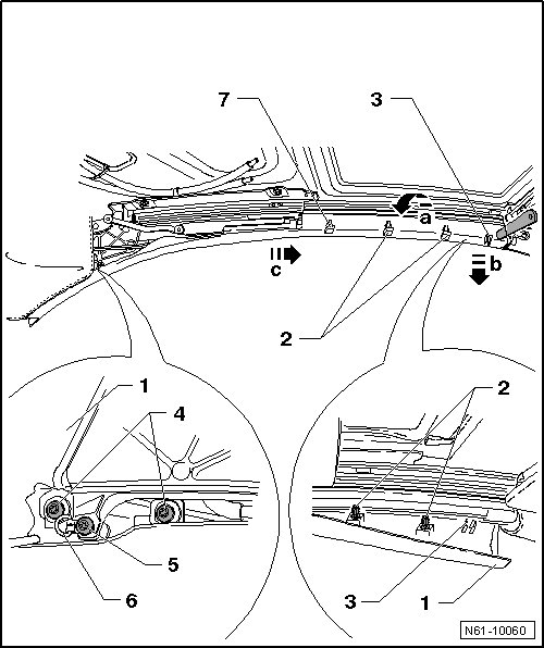- Using Trim Removal Wedge (3409) , pry trim - 1 - out of mount in guide rail - a arrow -.