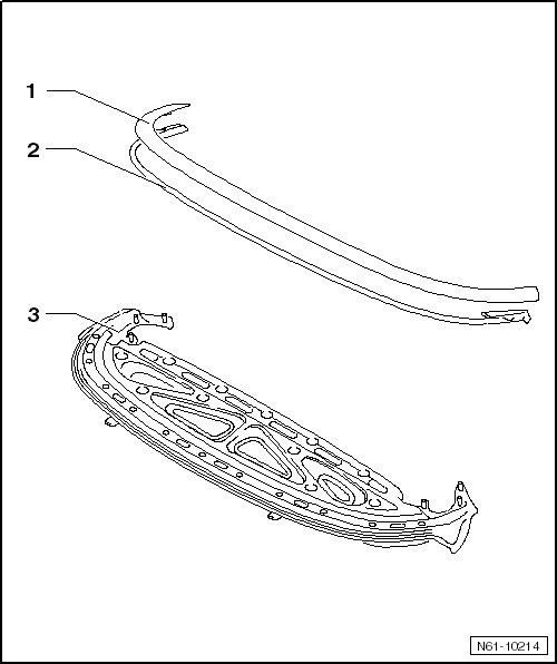 - Pry the protective strip - 1 - off the clips - 3 - using a plastic wedge and starting in the middle.