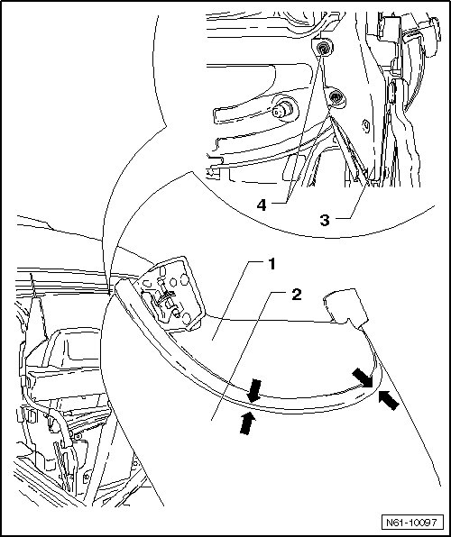 - Place the pre-tensioning tool (VAS 6389/2) between the assembly frame and locking bracket.