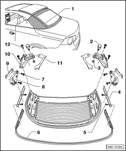 Removing and Installing, refer to => [ Rear Window Frame, Removing ] Rear Window Frame, Removing