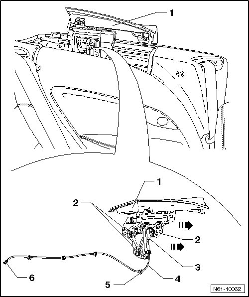 If the clip - 6 - for the cable - 4 - on the hinge is loose, it must always be replaced.