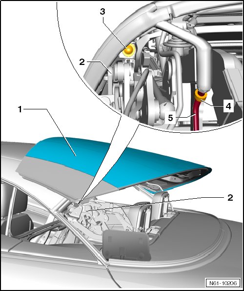 - Open the roof with the convertible top switch until it is just before the position shown.
