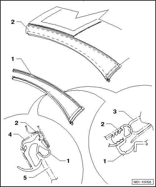 - Remove the inner seal from the roof pillar - 2 - staring in the middle.