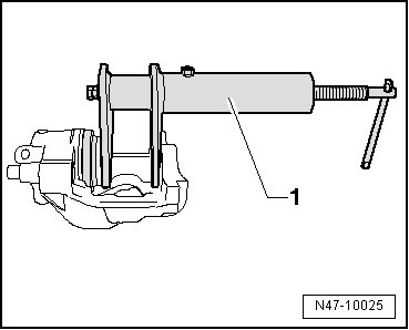 - Press piston into brake caliper using piston resetting tool - 1 -.