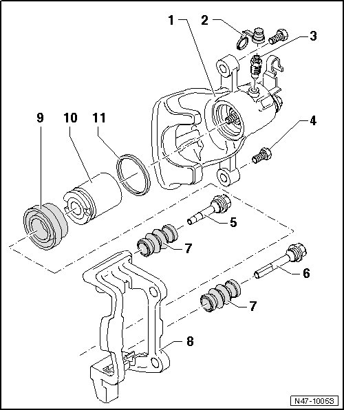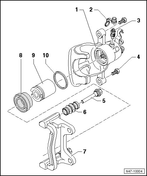 • Removing and installing, refer to => [ CI 38, CII 38 CII 41 Brake Calipers, Rear Brake Caliper ] CI 38, CII 38 CII 41 Brake Calipers, Rear Brake Caliper