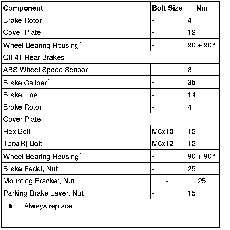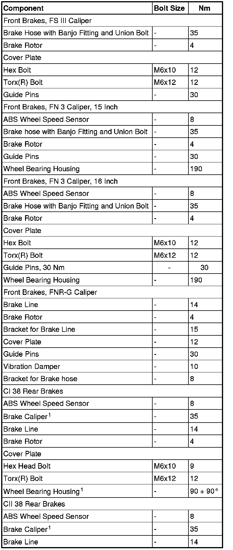 Brake System - Mechanical Components - Fastener Tightening Specifications