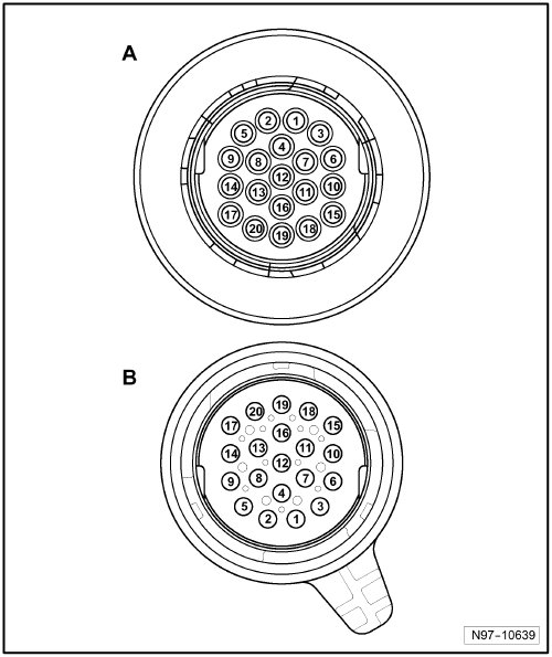 B - 20-pin connector -T20- on the wiring harness