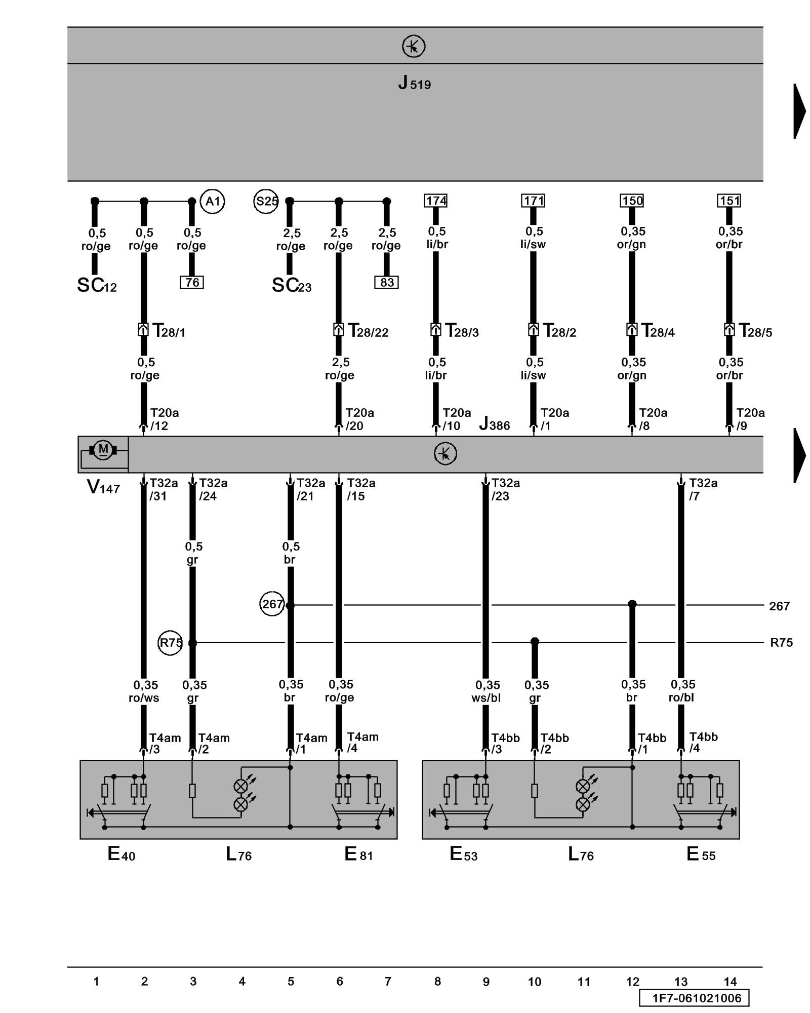 (R75) - Connection 1 (58d) (in door control module wiring harness)