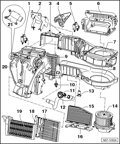 • Removing and installing, refer to => [ Temperature Regulator Door Motor (V68) ] Temperature Regulator Door Motor (V68).