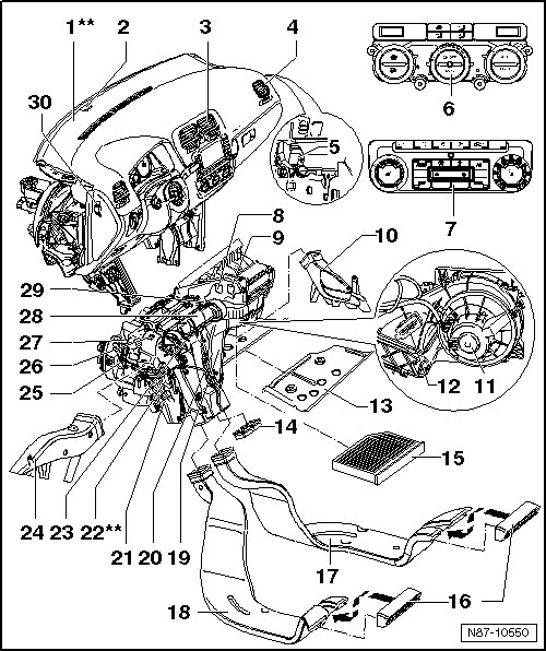 7 - Climatronic Control Module -J255- with A/C Display Control Head -E87- - integrated