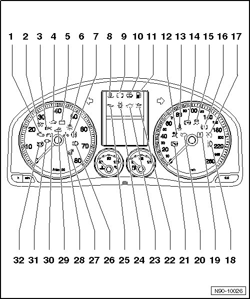 Different instrument clusters are used, depending on vehicle equipment. Therefore, the arrangement of the control lamps may deviate from the illustration.
