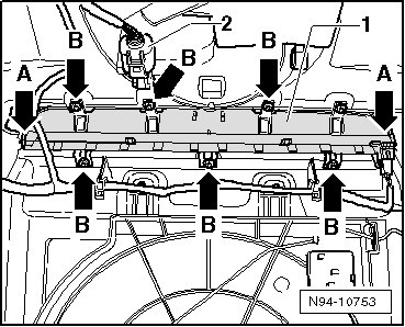 - Push the catches of the right or left side - arrows A - inward and remove the high-mounted brake lamp from the rear lid.