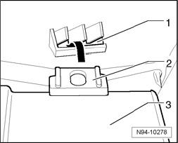 - Insert Headlamp Range Control Module J431 -3- with retaining clip -2- in bracket -1-.