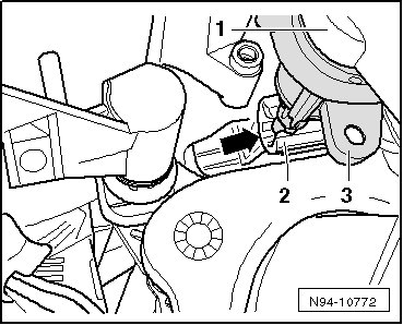 - Move the adjusting motor - 1 - so that ball head - arrow - of headlamp beam adjusting motor can be pulled out of guide - 2 -.