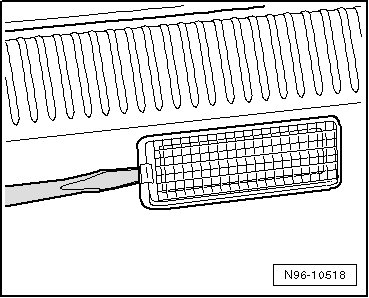 When removing and installing components in a visible area (switches, covers, trim, etc.), mask off the areas at which a prying tool ( (VAS 3409) , screwdriver) will be positioned, using commercially available adhesive tape.