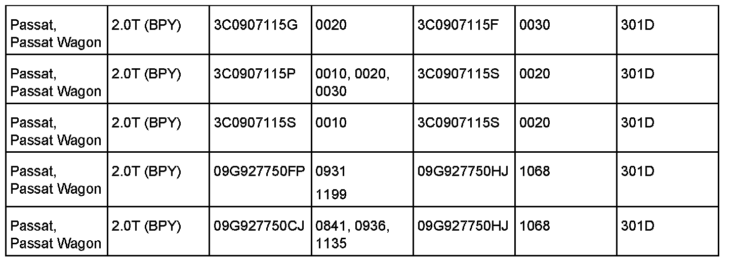 Update the Engine Control Module and/or Transmission Control Module using the Software Version Management (SVM) and the SVM Unit code as listed in the table above.