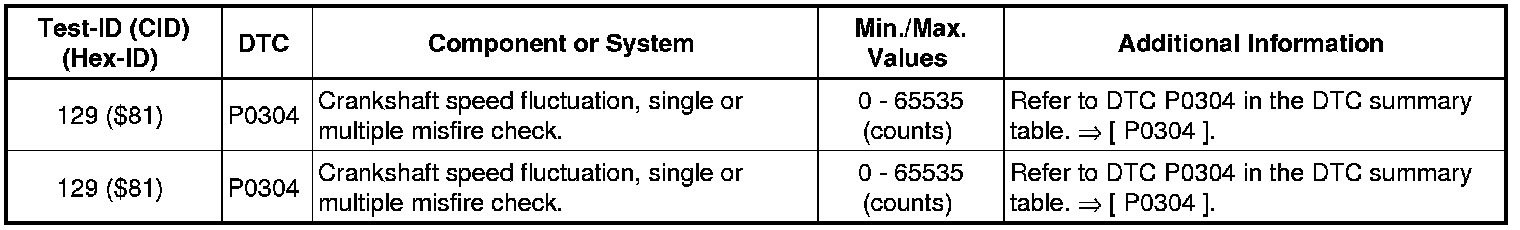 Test-ID 165 ($A5): Misfire Cylinder 4 Data