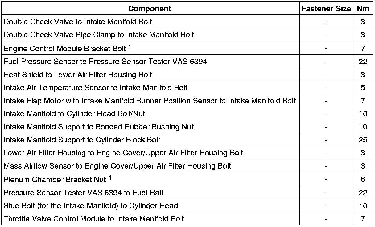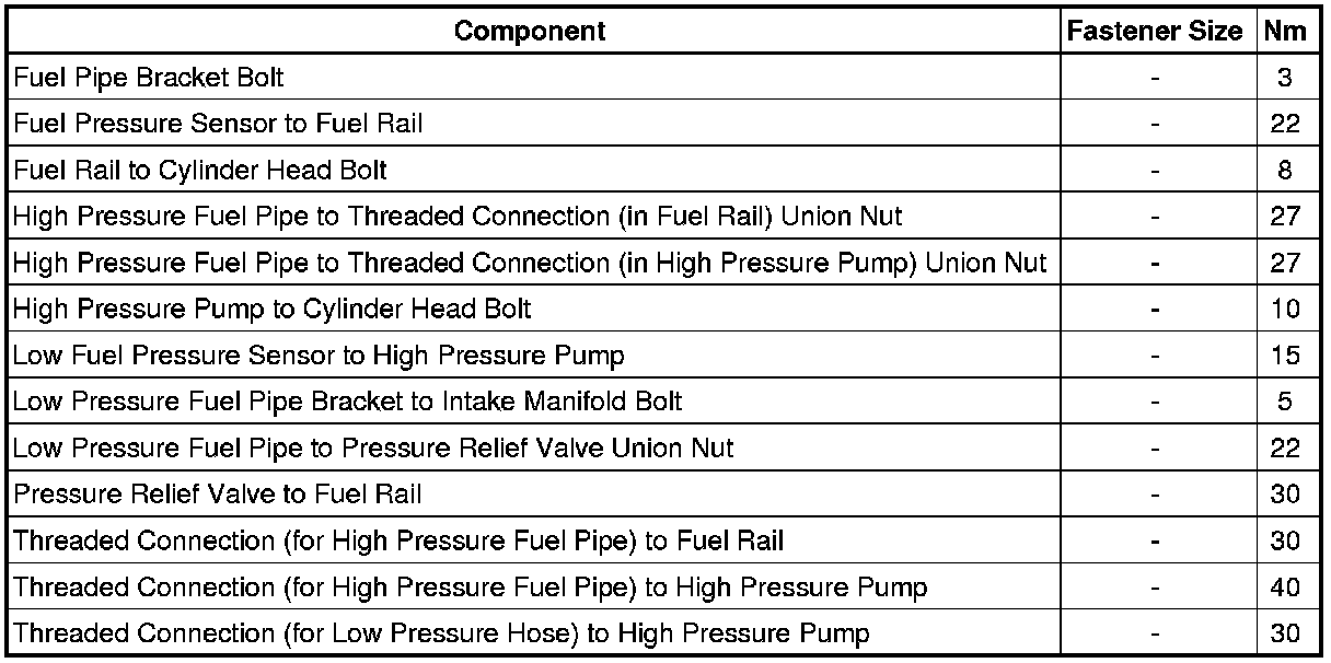Multiport Fuel Injection - Fastener Tightening Specifications