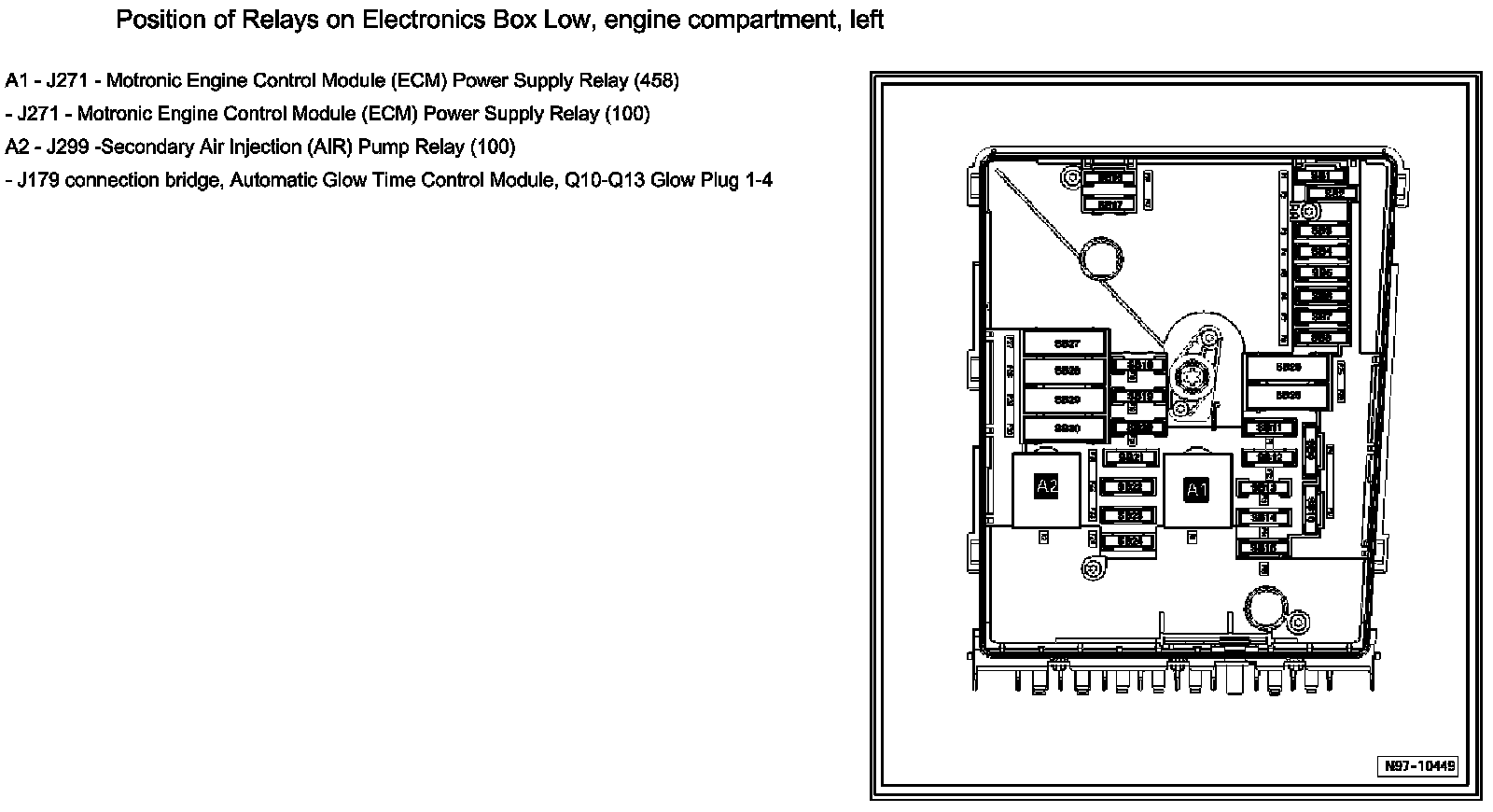 Position Of Relays On Electronics Box Low, Engine Compartment, Left: