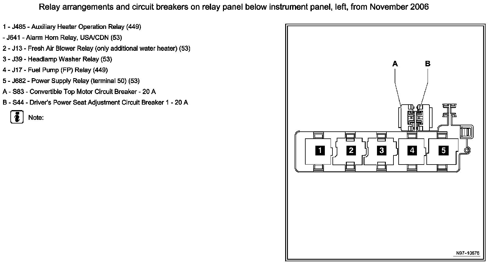 Relay Arrangements And Circuit Breakers On Relay Panel Below Instrument Panel, Left: