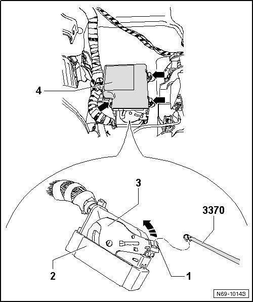 - Swing bracket - 3 - back - arrow - and disconnect bracket from control module - 4 -.
