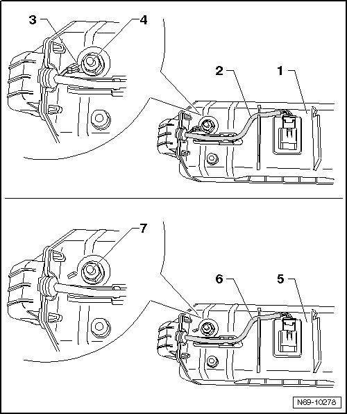 • Lengthen the ground cable as needed with suitable instruments from the Wiring Harness Repair Kit (VAS 1978) or the Wiring Harness Repair Kit (VAS 1978A).