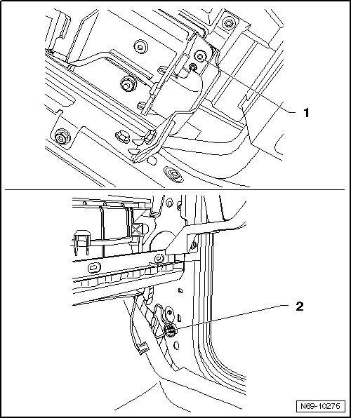 - Remove the two bolts - 1 - and - 2 - (9 Nm).