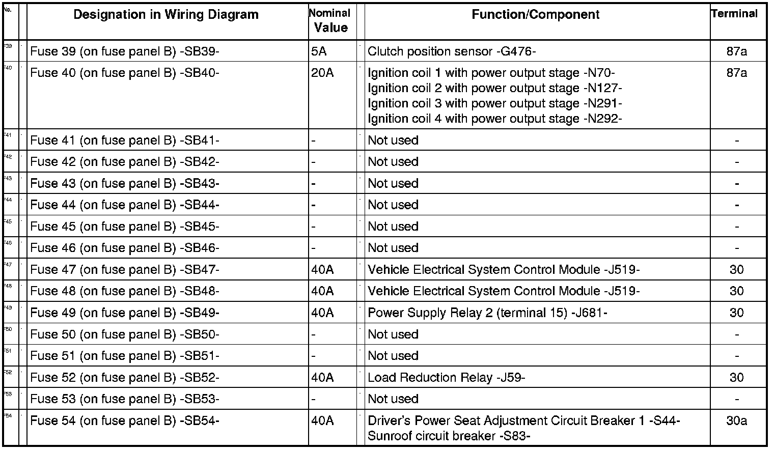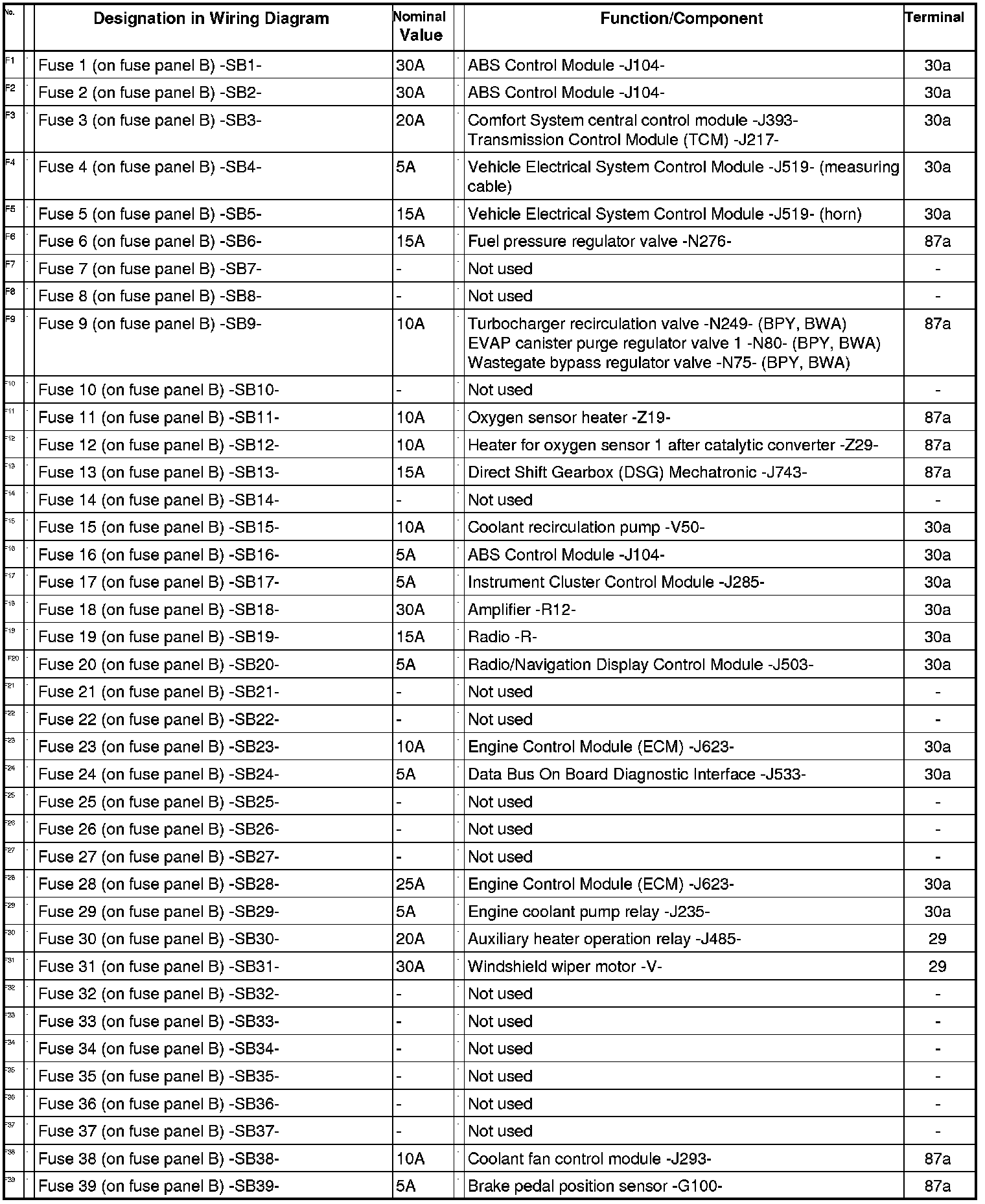 Fuses (SB) on Electronics Box High, engine compartment, left
