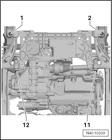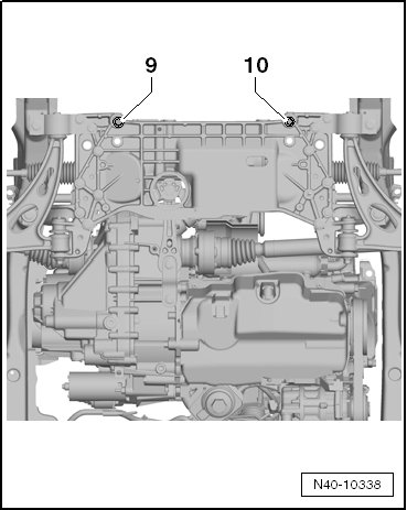 - Remove the bolts - 9 - and - 10 - and lower the subframe as far as necessary.