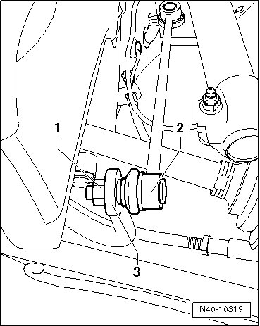 - Remove the bolt - 12 -, and remove the control arm from the subframe.