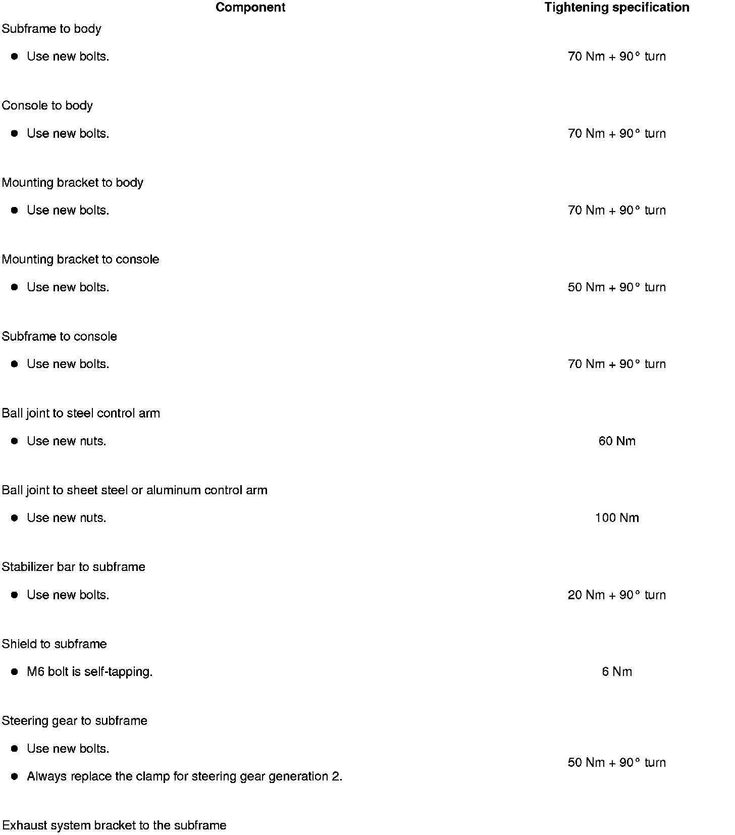 - Subframe, securing, refer to => [ Subframe and Consoles, Securing ] Front Suspension.