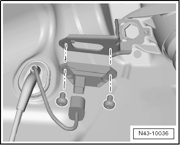 The tab on the retainer - 1 - must fit into the recess in the rear body acceleration sensor - arrow -.