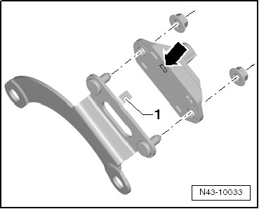 The tab on the retainer - 1 - must fit into the recess in the right front body acceleration sensor - arrow -.
