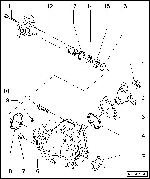 • Removing and installing, refer to => [ Bevel Box Output Flange and Seal ] Bevel Box Output Flange and Seal.