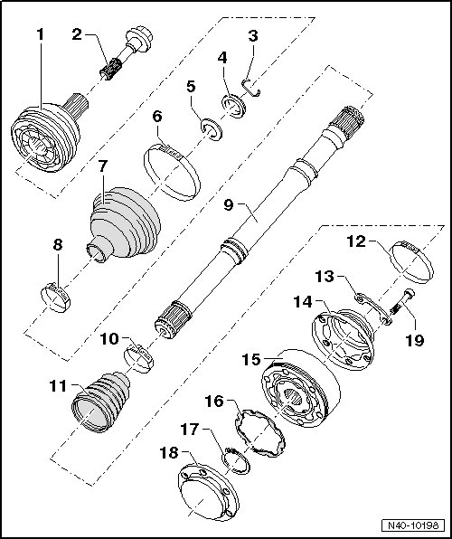 • Removing, refer to => [ Removing the Outer CV Joint ] Drive Axle with CV Joint VL107.