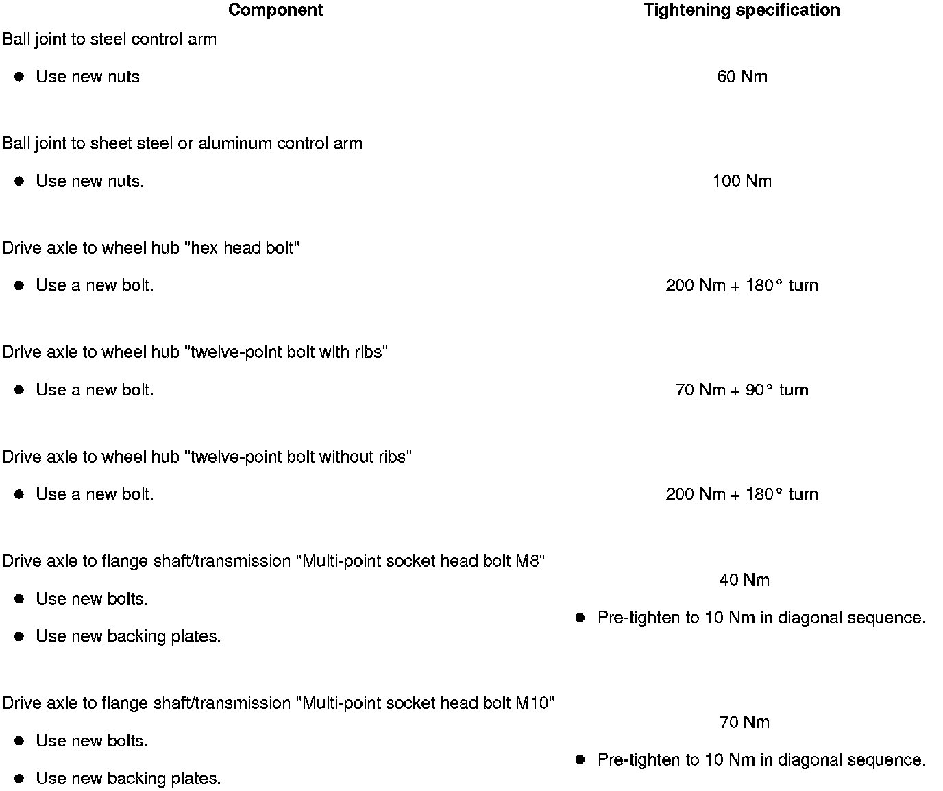 - Install inner joint of drive axle and initially tighten bolts diagonally to 10 Nm.