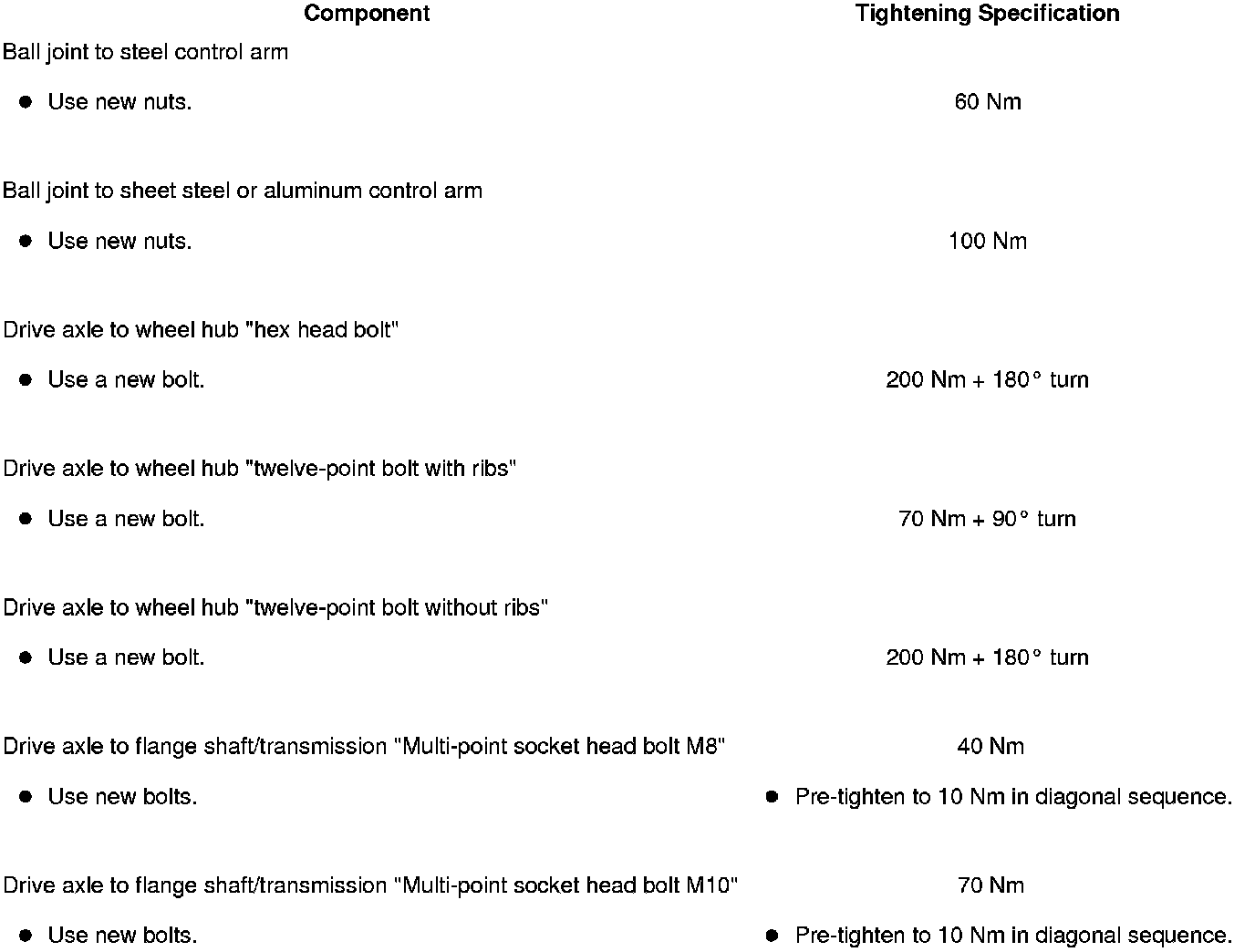 - Install inner joint of drive axle and initially tighten bolts diagonally to 10 Nm.