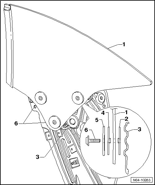 - Tighten bolts - 6 -. Tightening specification: 5 Nm.