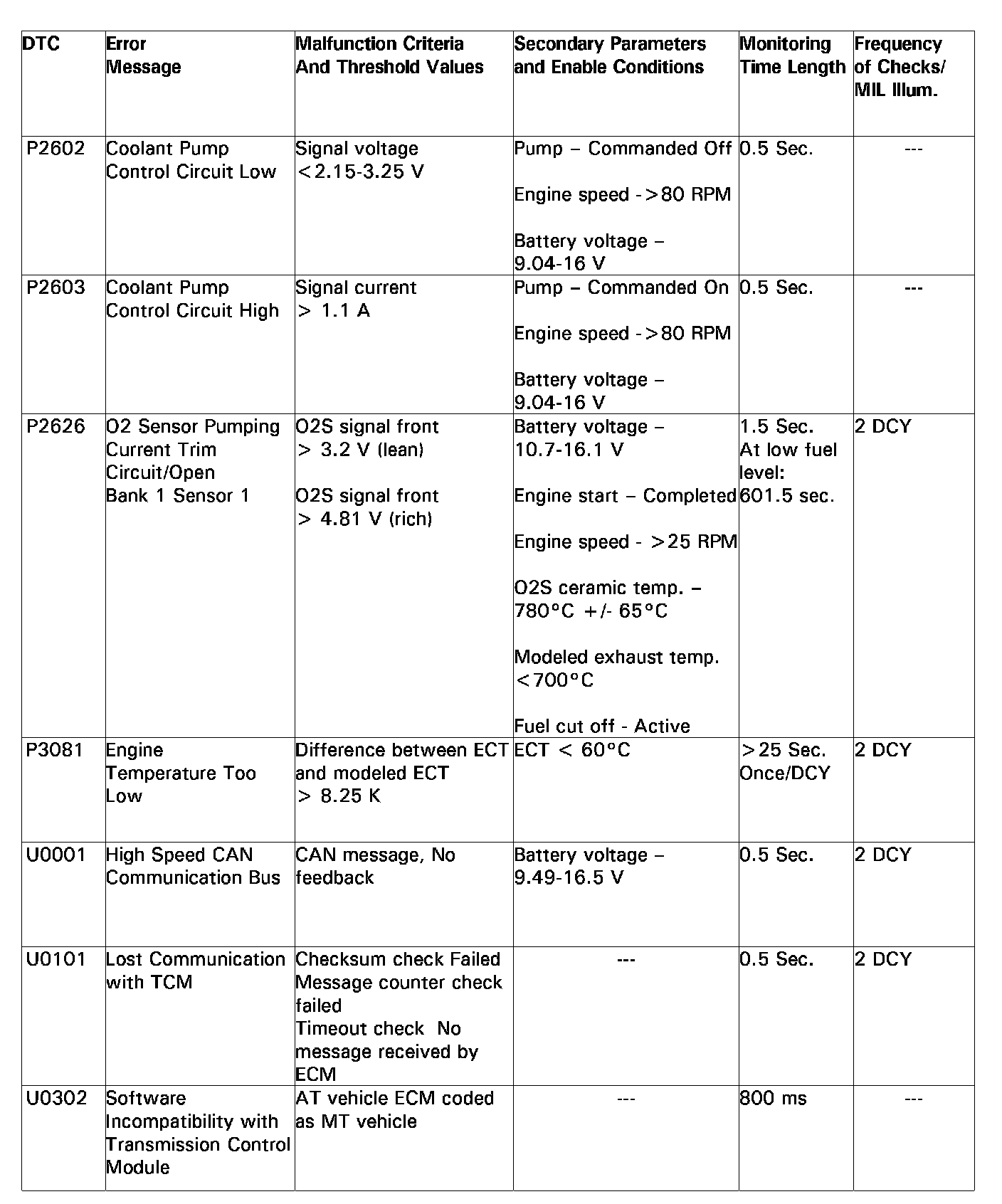 .02.00.00 - OBD DTC SUMMARY TABLEDTC P000A - P025D: