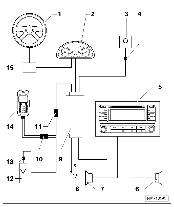 • Removing and Installing, refer to => [ Telephone Mount, Rabbit Sedan from 06.06 ] Communication