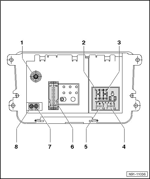 • Multi-pin connector assignments, refer to => [ 8-Pin Connector 2, Voltage Supply, CAN Bus, Telephone Muting ] RCD 310 Radio Connections, Overview.