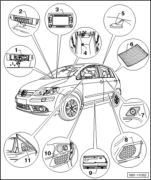 • Overview of harness connectors, refer to => [ RCD 510 Radio Connection Overview ] RCD 510 Radio Connection Overview